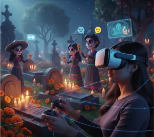 No se trata solo de ver un video 360° de un panteón. Se trata de co-presencia: la sensación de “estar ahí” con otros. Familias que viven en diferentes continentes pueden “caminar” juntas con sus avatares por una recreación digital del panteón de Mixquic, dejar flores virtuales en una tumba y escuchar anécdotas en un espacio 3D compartido. La tecnología permite una reunión que de otra manera sería imposible, centrando la experiencia no solo en el recuerdo, sino en el acto compartido de recordar.