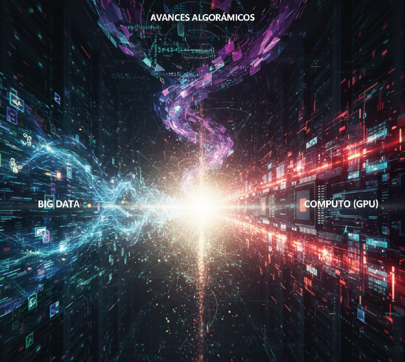 Poder de Cómputo (GPU): Los investigadores descubrieron que las Unidades de Procesamiento Gráfico (GPU), diseñadas para videojuegos, eran perfectas para los cálculos masivos que requerían las redes neuronales.